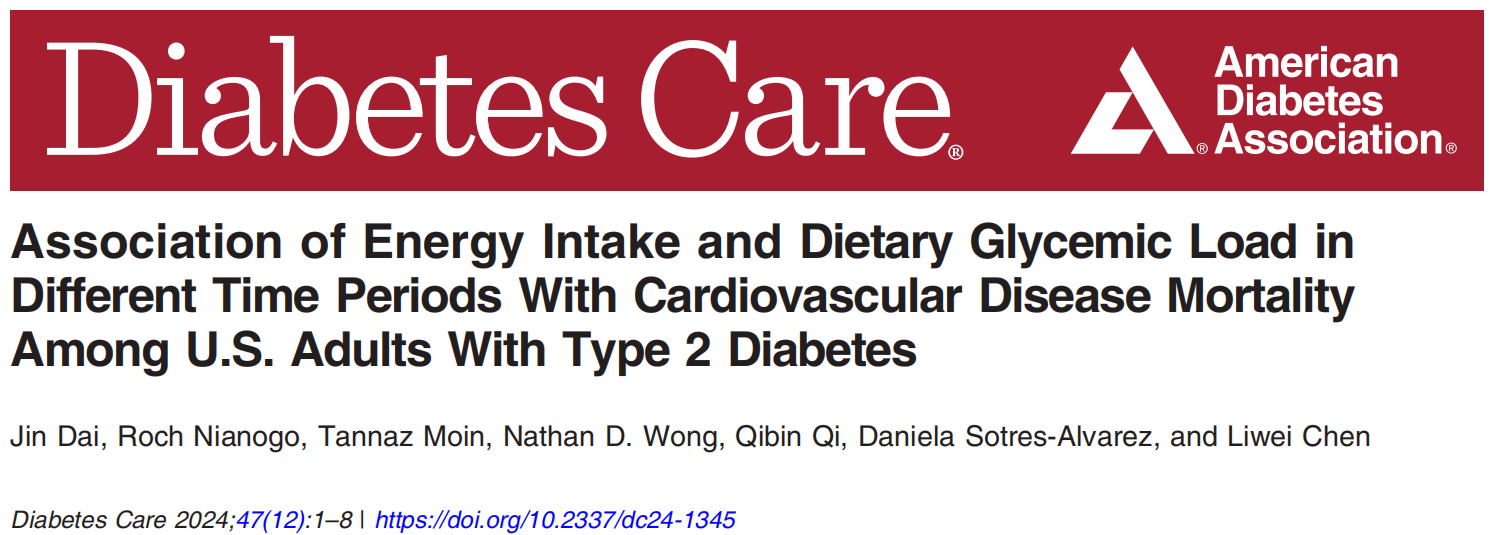Jin Dai, Roch Nianogo, Tannaz Moin, et al. Association of Energy Intake and Dietary Glycemic Load in Different Time Periods with Cardiovascular Disease Mortality Among U.S. Adults with Type 2 Diabetes [J]. Diabetes Care, 2024, 47(12):1-8.